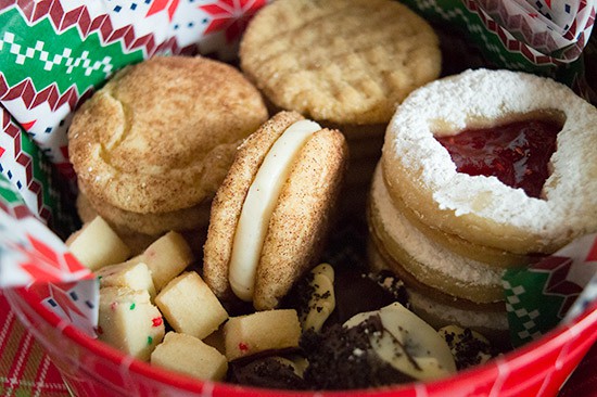 Oreo Truffles, Snickerdoodle Cookie Sandwiches with Eggnog Buttercream Filling, Mini Classic Peanut Butter Cookies, Christmas Shortbread Tidbits, Linzer Cookies with Raspberry Jam