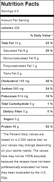 Nutritional Information (for 6-ounce bone-in chops)