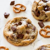 Delicious cookies with chunks of salty, crunchy pretzel and homemade Nutella chips in every bite.