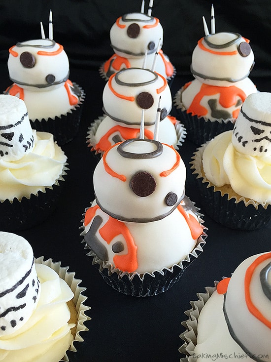 Oh these are the BEST BEST BEST!! So so cute. My hubs love star wars… as with all men I suppose. Well, I kinda like it too. And BB8, he’s soooo into it. He’ll definitely die with these cupcakes.