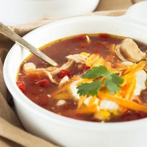 Last month we did a January salad series, and that worked out so well I figure we will keep up the themed months, at least until it stops being fun. Coming into cold and chilly February, I thought, what better than a month of soups? So every week until March we’ll have a new soup or stew or chowder, starting with, drum roll please… the World’s Easiest Chicken Taco Soup.